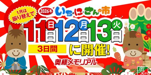 ★★2026年1月は11日・12日・13日開催!オクメモいち・に・さんの市★
