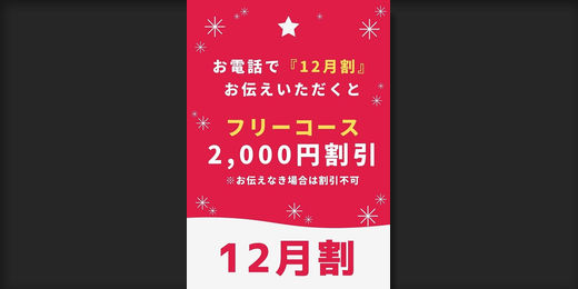 お電話で『12月割』とお伝え頂くと、フリー限定?2,000円割引