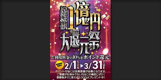 いまなら新規ご登録で 2,000pt プレゼント。