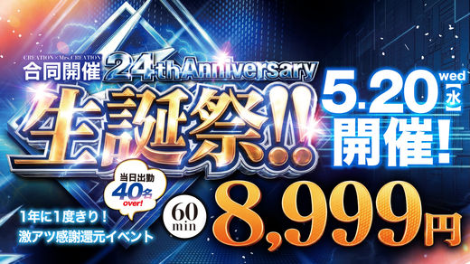年に一度の生誕祭5/20開催!!当日限り60分8,999円!