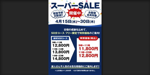 日頃の感謝を込めて、50分コース フリー限定で特別価格のご案内!