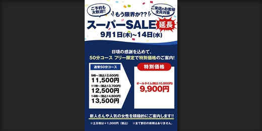 期間中、フロント写真新人マークの女性をご指名もしくはご予約頂いた場合「総額から500円割引」でご案内致します!