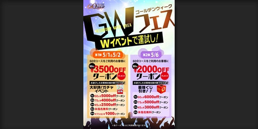 更に!!60分¥3500クーポン 75分¥4000クーポン配布