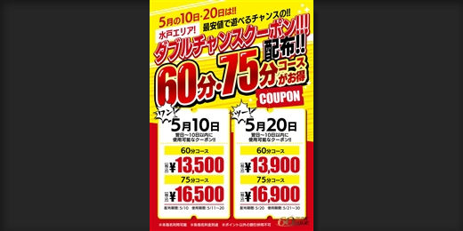 60分、75分で利用可能なお得なクーポンを配布!!