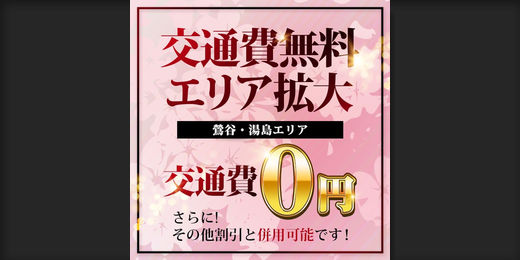 ▼【交通費無料エリア拡大!】湯島・鶯谷エリアがゼロ円でご利用可能です!!